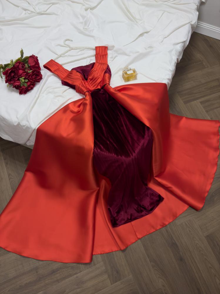 فستان مخمل وميكادو